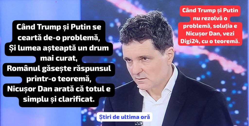 Când Trump și Putin nu rezolvă o problemă, soluția e Nicușor Dan, vezi Digi24, cu o teoremă.