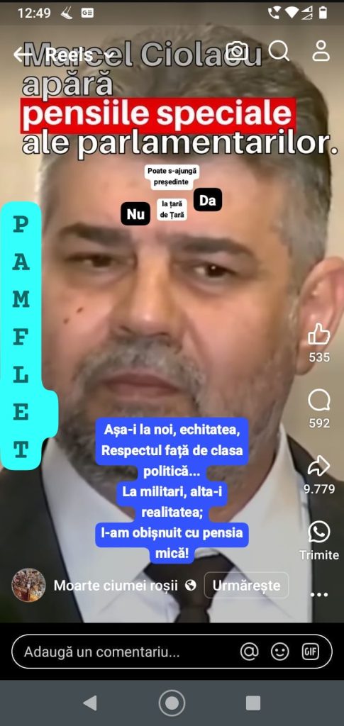 Atenție: Ciolacu și Weber, răspundeți pentru…Forțele Armate și apărarea patriei! stiri_ultima_ora | 2024-11-12 | Arta, Creatie, Cultura, Economice, Externe, Mondene, Muzica, Politice, Sanatate, Sociale, Sport, Sportive, Stiri Ultima Ora | Niciun comentariu https://www.facebook.com/Anchetatorii.RO/videos/1951836558662862 ADRESA-CATRE-CURTEA-CONSTITUTIONALA_241111_092103Descarcă https://mcppress.ro/forum/viewtopic.php?t=424 Sursa: Mihail Georgevici, MCP Press Agency Related Posts VADIM SI ȚOPESCU – AU FOST DOI OAMENI MARI DE CULTURĂ ! Dovada fiind un comentariul nemaipomenit de la MCP Press Agency, care este…binevenit! Niciun comentariu | ian. 7, 2024 În politică și mai ales în afaceri, de unde credeți că vine norocul? Niciun comentariu | iul. 21, 2020 Începem să scăpăm de ciumă! Niciun comentariu | oct. 26, 2021 Merită felicitări cei doi îndrăgostiți aflați în carantină la graniță! Niciun comentariu | apr. 7, 2020 Add a Comment Anulează răspunsulTrebuie să fii autentificat pentru a publica un comentariu.