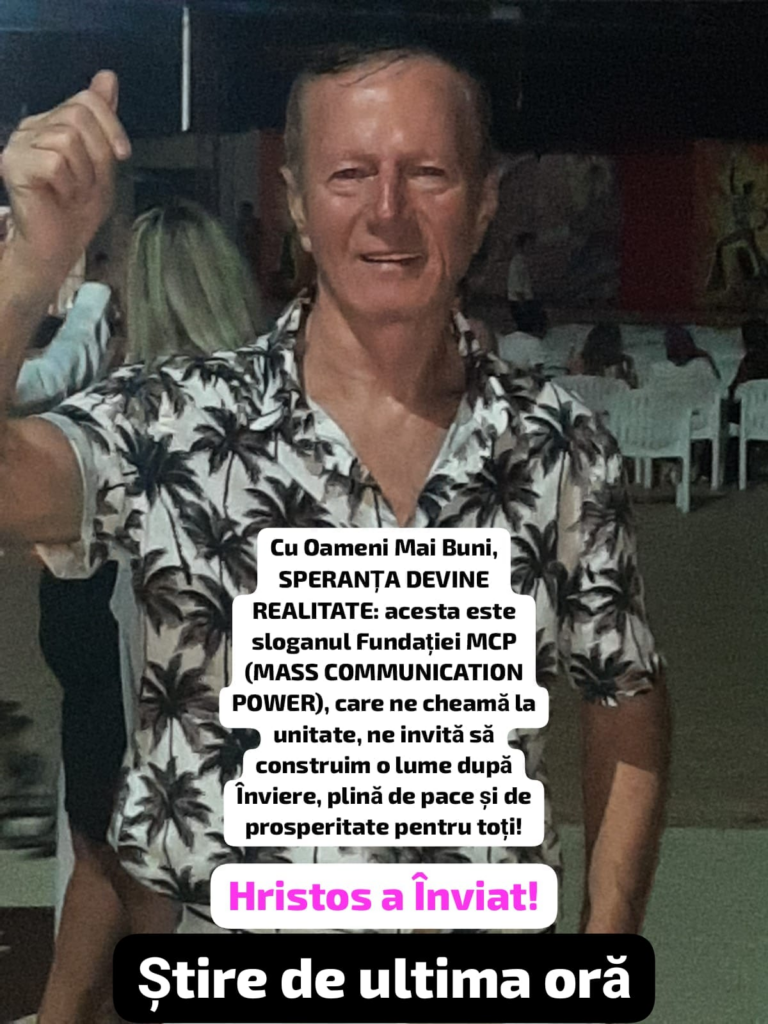 Cu Oameni Mai Buni, SPERANȚA DEVINE REALITATE: acesta este sloganul Fundației MCP (MASS COMMUNICATION POWER), care ne cheamă la unitate, ne invită să construim o lume după Înviere, plină de pace și de prosperitate pentru toți!