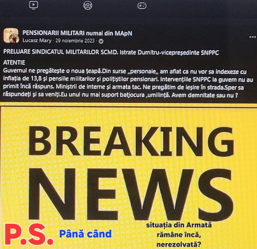 Pensiile militare nu au fost mărite niciodată de la apariția Legii 223/ 2015. În anul 2023 a fost aplicată o indexare suplimentară, unor categorii de militari în rezervă. Procente ridicole și insultătoare prin care s-a egalizat sărăcia.