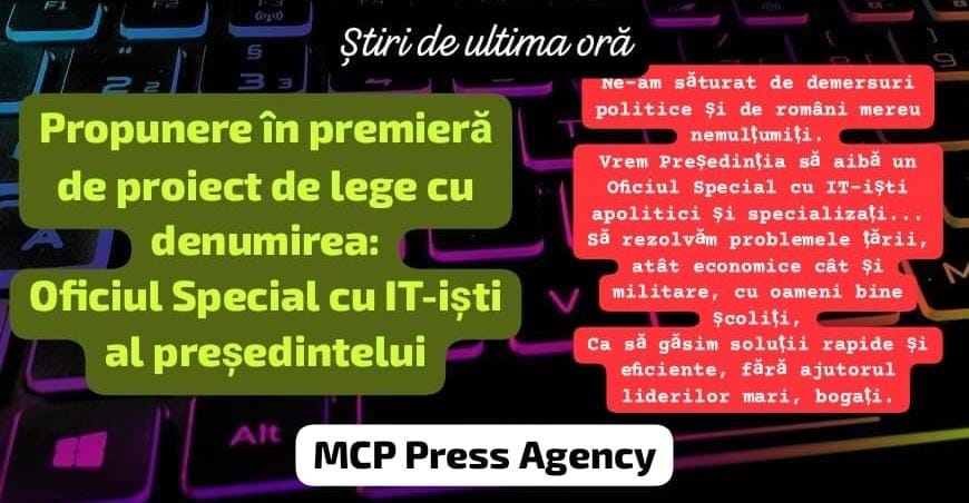 Propunere în premieră de proiect de lege cu denumirea: Oficiul Special cu IT-iști al președintelui.