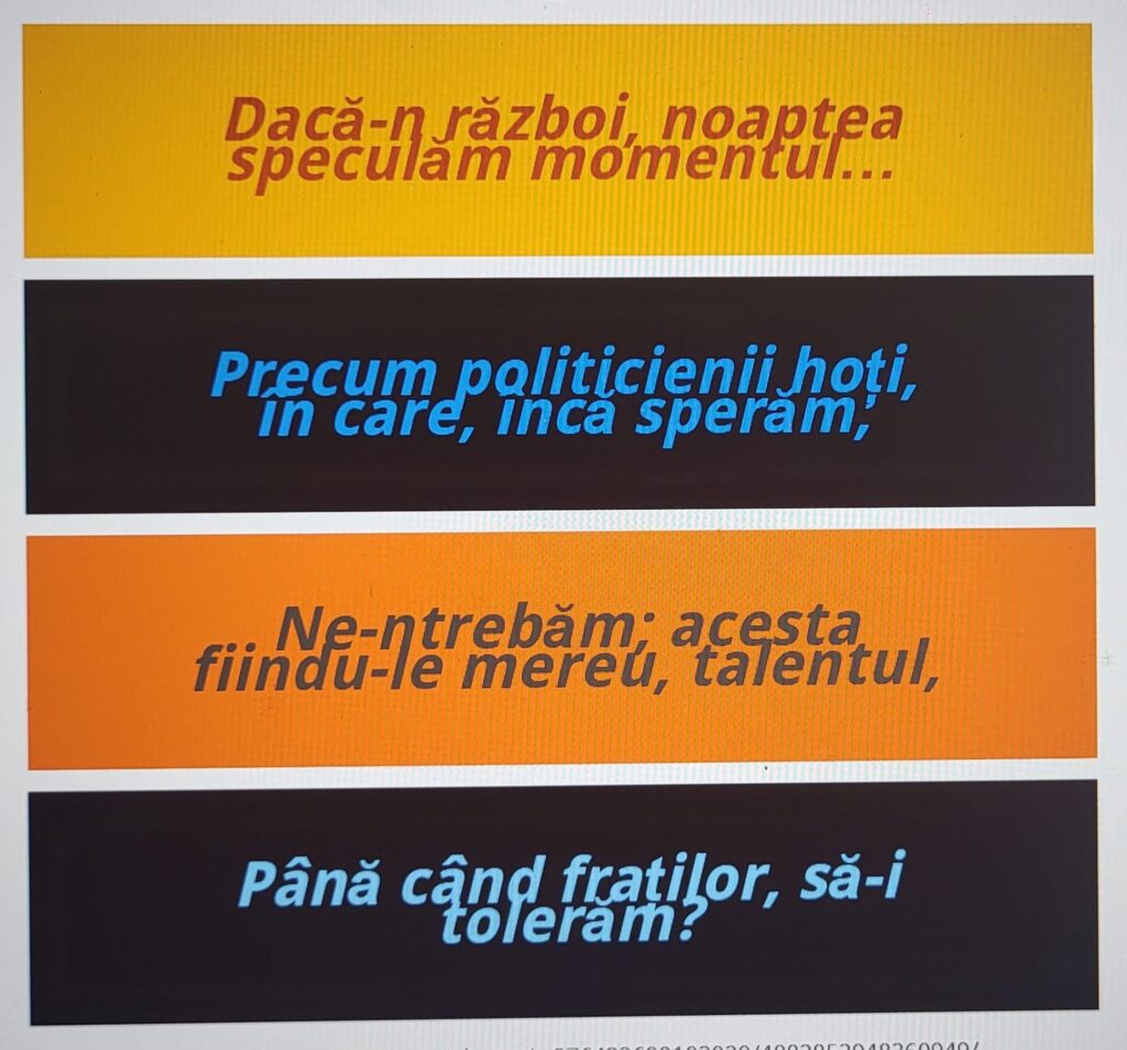 Trebuie să rămânem la obiect, să cerem responsabilitate, iar votul să fie unul conștient, din suflet, bazat pe fapte și nu pe promisiuni goale. Numai așa putem construi o țară cinstită, unde fiecare are un loc, și unde adevărul, nu minciuna, ne ghidează pașii înainte.
