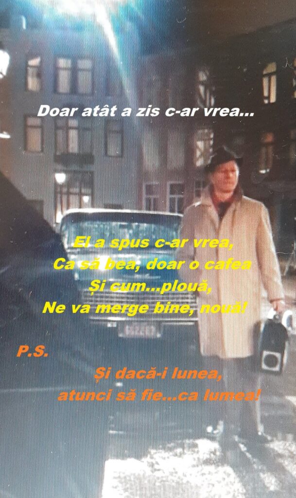 Și afară plouă, plouă; el a zis la început c-ar vrea, doar o ceașcă cu cafea…